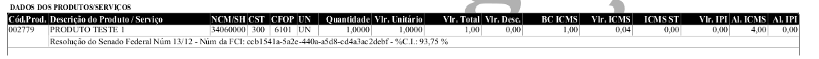 Abaixo é mostrado como o os dados da FCI são impressos na NF: